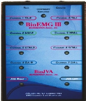BioEMG 8 Leads is a device that uses 8 electrodes to measure the electrical activity in a muscle. This activity is known as electromyography (EMG). The device records the electrical signals generated by the muscle when it contracts and relaxes, and the data is then analyzed to assess the muscle's health. This can help detect muscle weakness, nerve damage, or muscle disorders. The 8 leads refer to the 8 electrodes that are placed on the surface of the skin, directly over the muscle being examined. The device is used to diagnose and monitor muscle and nerve conditions, as well as to evaluate the effectiveness of treatments.